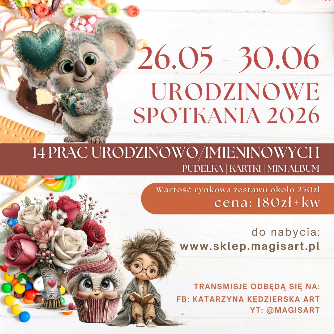 Przed Wami wyjątkowy cykl Urodzinowych Spotkań 2026, który będzie trwał od 26.05 do 30.06.2026. W tym czasie wspólnie stworzymy 14 prac urodzinowo- i imieninowych – pojawią się kartki, pudełka, mini album oraz inne różnorodne formy, które będzie można wykorzystać na wiele okazji.